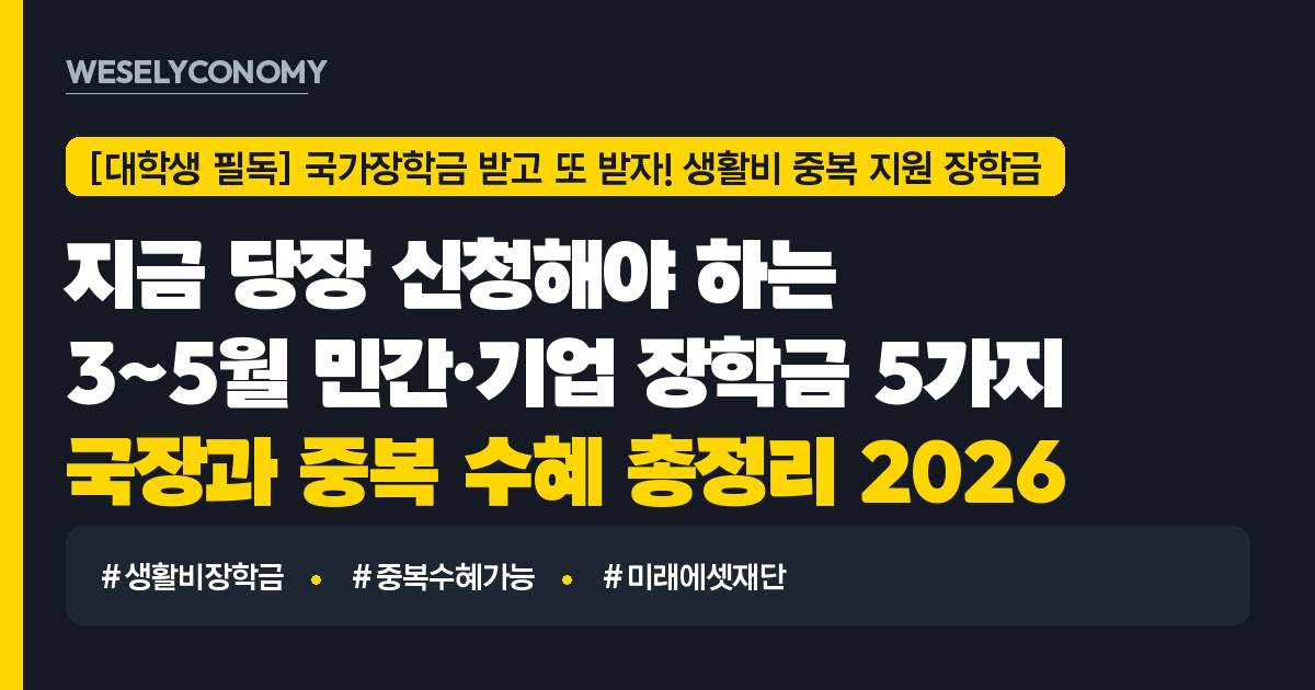 2026년 3~5월에 실제 접수가 열리는 민간·기업재단 장학금 5가지입니다. 아래 일정을 먼저 확인하세요.