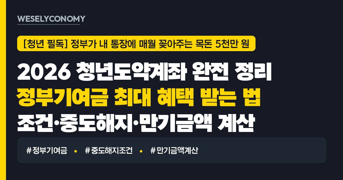 청년도약계좌는 이미 신규 가입이 닫혔지만, 지금 계좌를 보유하고 있다면 그 자체가 상당히 좋은 자산입니다. 정부기여금과 비과세 혜택이 만기까지 살아있는 만큼, 중도에 포기하지 않는 것이 가장 중요해요. 여러분의 5년 목돈 마련을 응원하는 weselyconomy가 늘 곁에 있겠습니다.