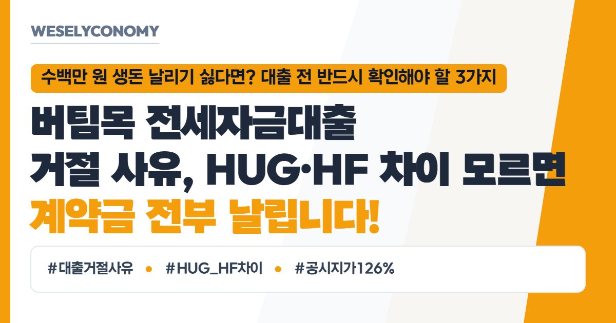 "은행 대출 거절은 내 인생의 실패가 아니라, 그저 '나와 집의 조건이 은행 매뉴얼과 맞지 않았을 뿐'입니다. 거절 사유를 명확히 알면 다음번엔 무조건 승인받을 수 있습니다. WESELYCONOMY가 알려드린 HUG와 HF의 차이점, 그리고 방어 특약을 무기로 당당하게 전셋집을 쟁취하시길 응원합니다."