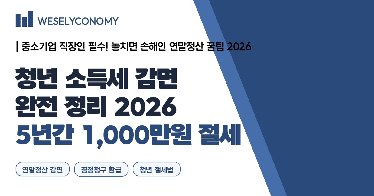 연말정산에서 신청하지 않으면 그냥 사라지는 청년 세금 감면 혜택. 중소기업 취업 청년이라면 소득세 90% 감면이 5년간 가능합니다. 조건·한도·신청법·주의사항까지 2026년 최신 기준으로 완전 정리했습니다.