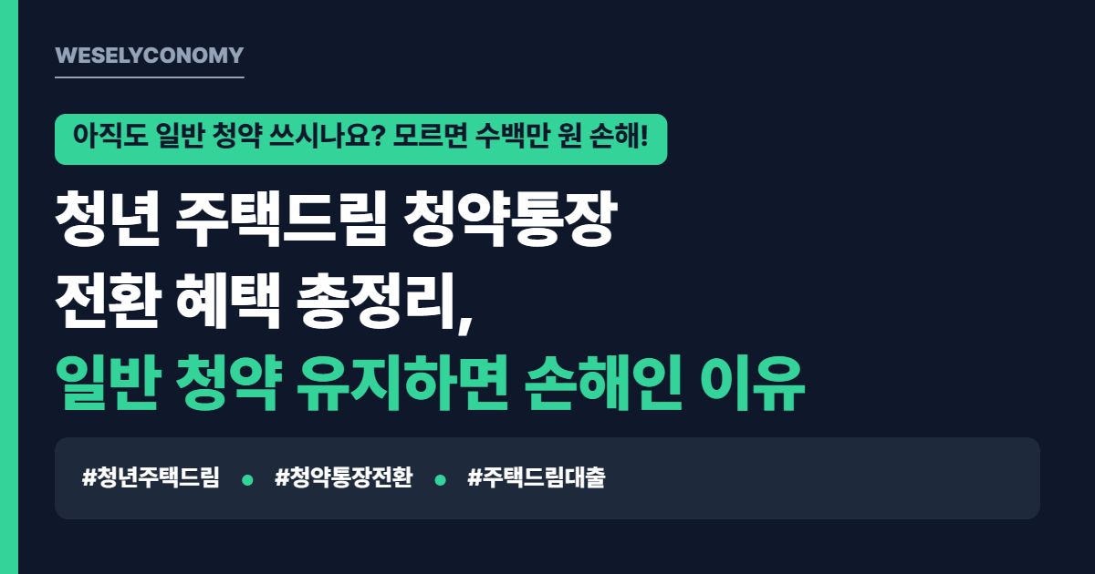 혹시 아직도 '주택청약종합저축'에 매월 10만 원씩 입금하고 계신가요? 최대 4.5% 우대 금리에 2.2% 저금리 대출 혜택까지 제공하는 청년 주택드림 청약통장으로 전환하지 않으면 무조건 손해인 이유를 명쾌하게 짚어볼게요.