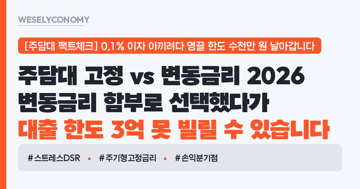 변동금리 선택하면 3억 못 빌릴 수도 있습니다 — 주담대 고정·변동 2026 완전 비교