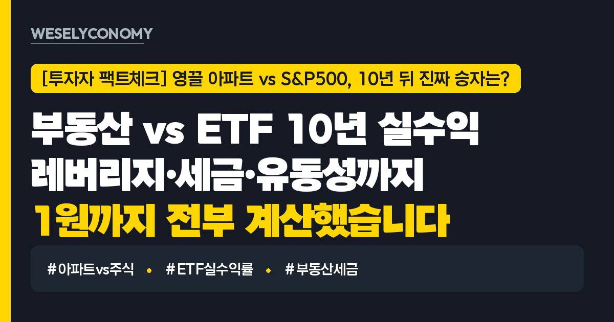 부동산 vs ETF 10년 실수익 비교 — 레버리지·세금·유동성 전부 계산했습니다
