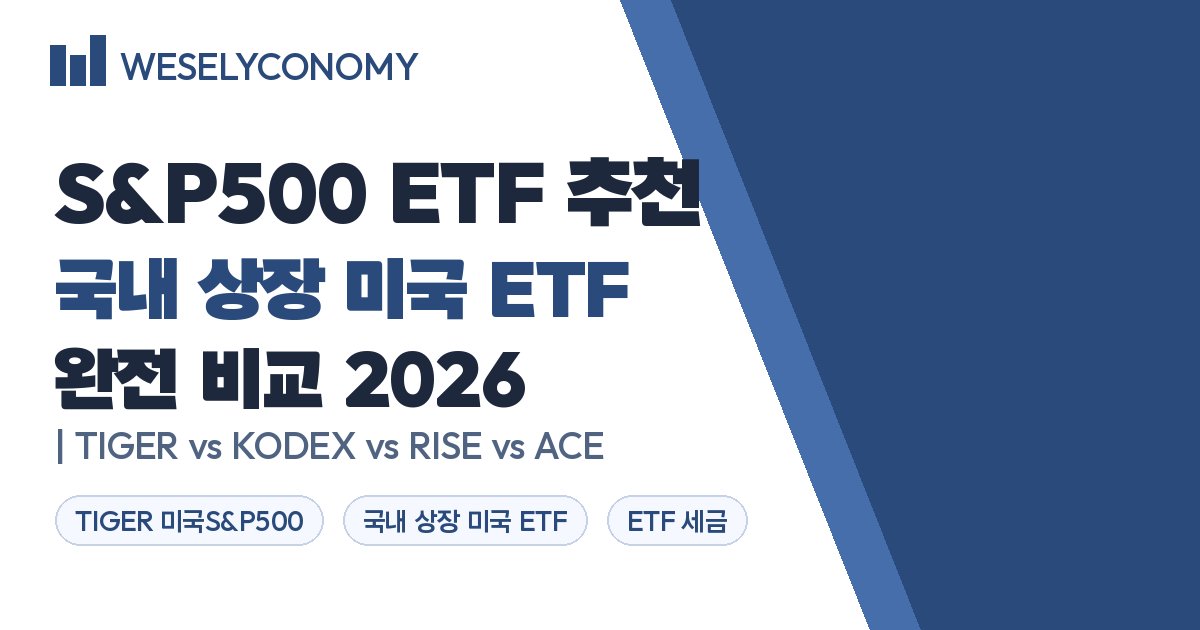 S&P500 ETF 추천 | 국내 상장 미국 ETF 완전 비교 2026 — TIGER vs KODEX vs RISE vs ACE 3월 8, 20262월 28, 2026 작성자: wesely