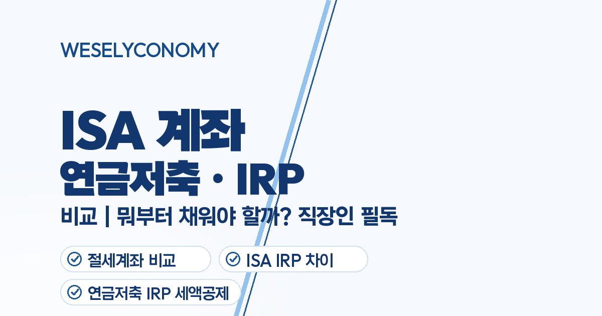 ISA 계좌 vs 연금저축 vs IRP 비교 | 뭐부터 채워야 할까? 직장인 필독