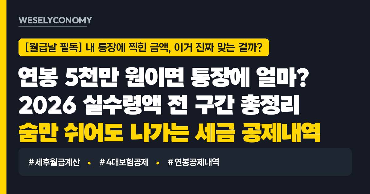 연봉 5천만 원이면 통장에 얼마? — 2026 연봉 실수령액 전 구간