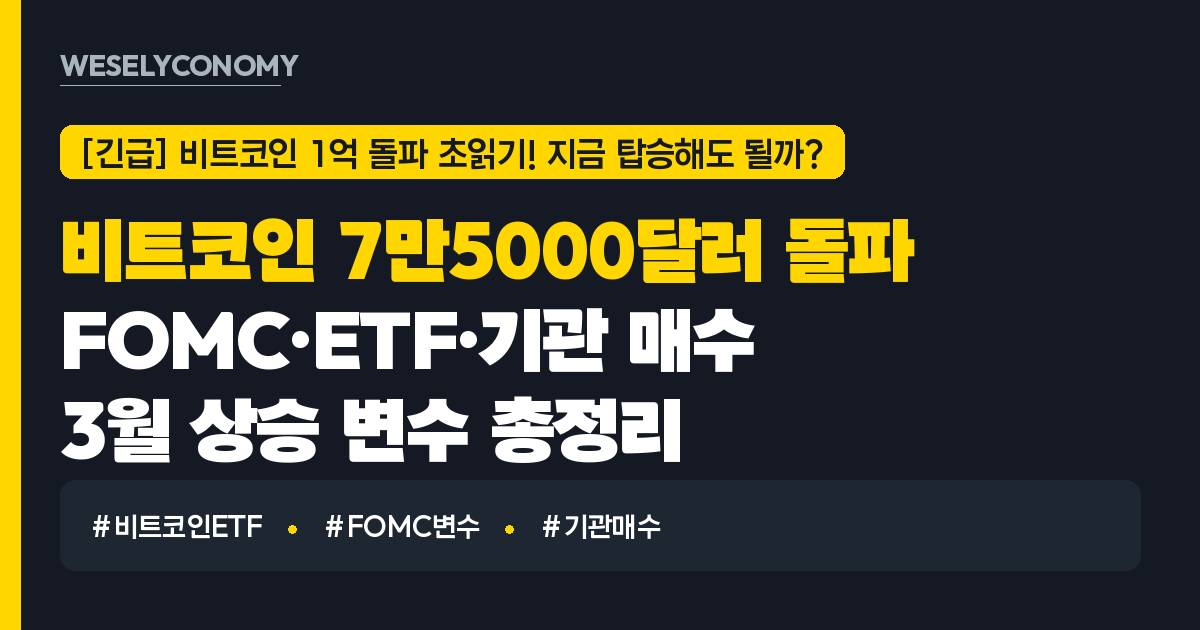 비트코인 7만5000달러 돌파 시도 — FOMC·ETF·기관 매수, 3월의 변수 총정리